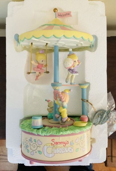 Up for auction is a fabulous Sammy’s Circus Action Musical by Enesco. This Precious Moments Collection beauty was never used and will be shipped in its original box and packaging. It is in excellent working condition and plays the tune “Put On A Happy Face” as the characters (clown, puppy, girl on swing & girl on trapeze) rotate around the center ring. Don’t miss this wonderful opportunity to purchase this delightful & very rare collectible here!Important: I ship only to buyers in the continental USA and all sales are final so please ask questions before placing your bid. Payment is required within 2 days of the end of this auction. Thanks for your interest and good luck. (Condition: Brand New)